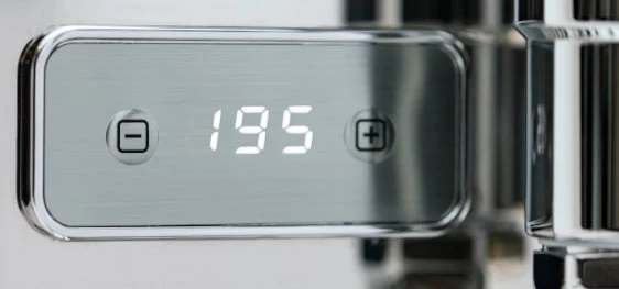 Further refinement of your espresso can be achieved through the front mounted brew pressure valve which can set the expansion valve between approximately 8.5 and 12 bar. Located opposite the gauge on the top left of the machine is the stylish brew pressure gauge which matches the knob with a cool navy blue face with white lettering.