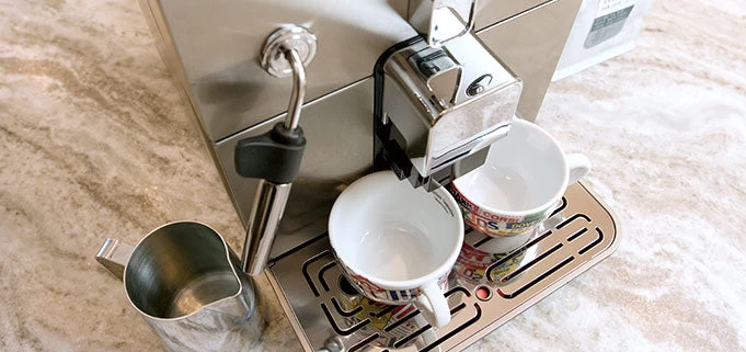 Capacity wise, the Brera has a 40 oz water reservoir, 8.8oz bean hopper, and can hold up to 9 spent pucks of coffee. The drip tray holds up to 28 oz of water, and the brew spouts can fit cups up to 4.5” tall which is enough clearance for a standard American coffee mug. Maintenance alerts will also keep you informed when you need to refill the water reservoir, add more beans, empty the dreg drawer, or descale.